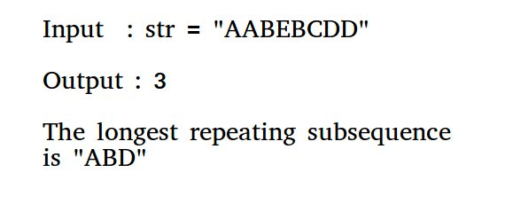 System.out.println("The longest repeating sequence is " + longestRepeatingSubsequence(s));
